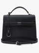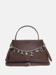 A modern vanity-inspired box bag with tan accents and gold hardware, compact yet statement-making.
