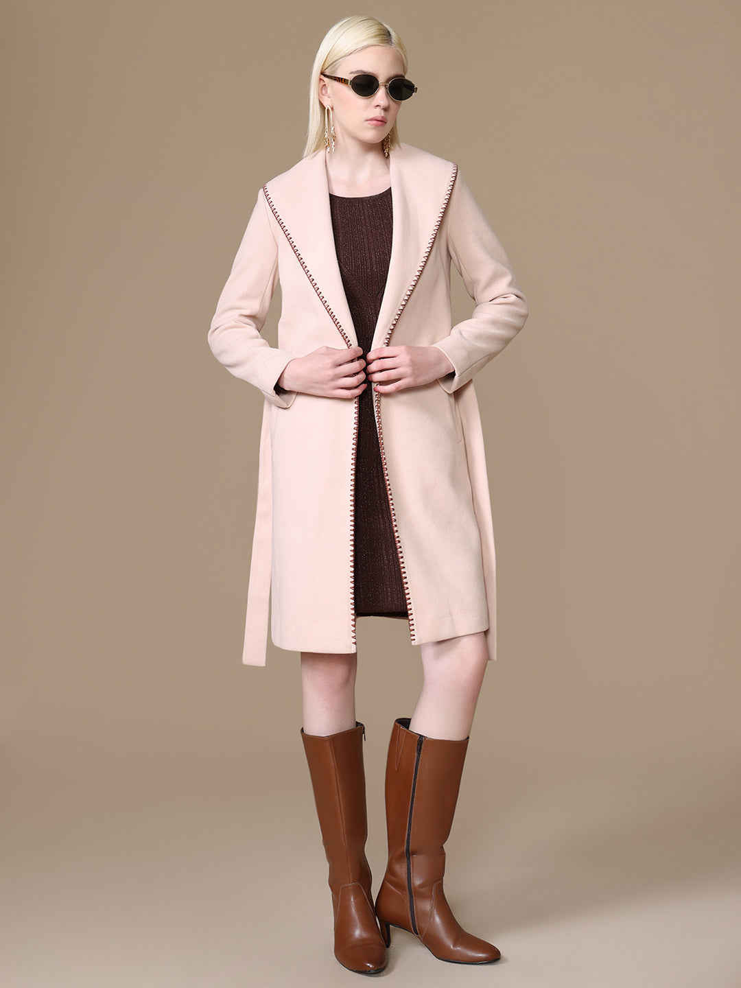 Stay cozy and stylish with this chic blush overcoat. Designed with a soft-touch fabric, it features an open front, full sleeves, and a self-tie belt for a flattering fit. The versatile blush tone makes it perfect for layering over casual or dressy looks, taking you seamlessly from day to night.