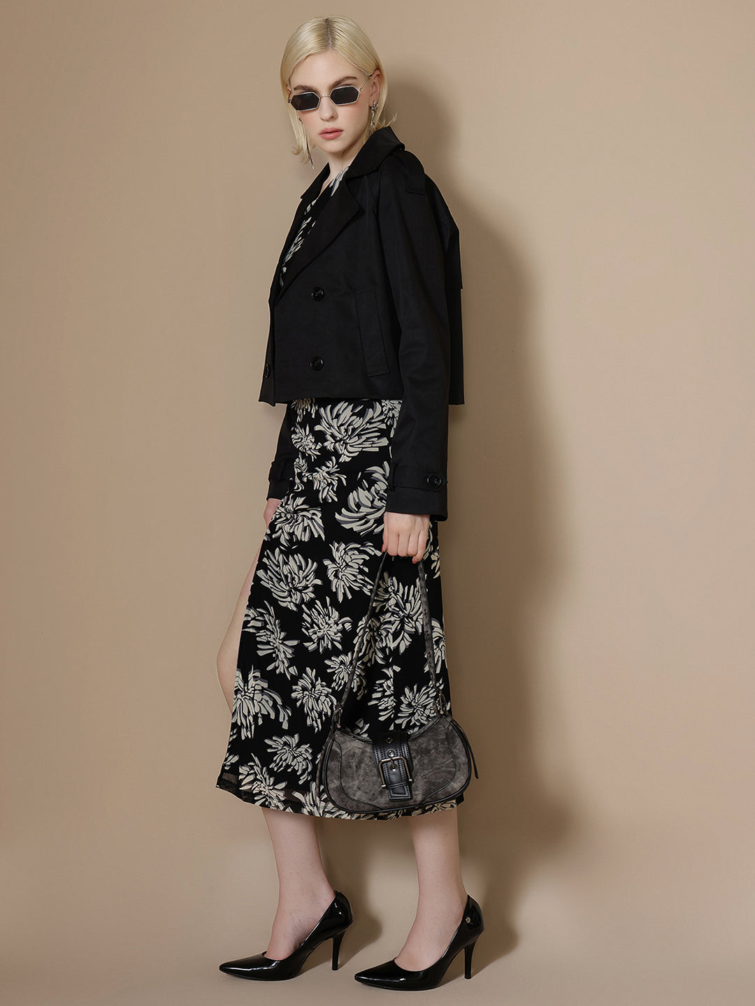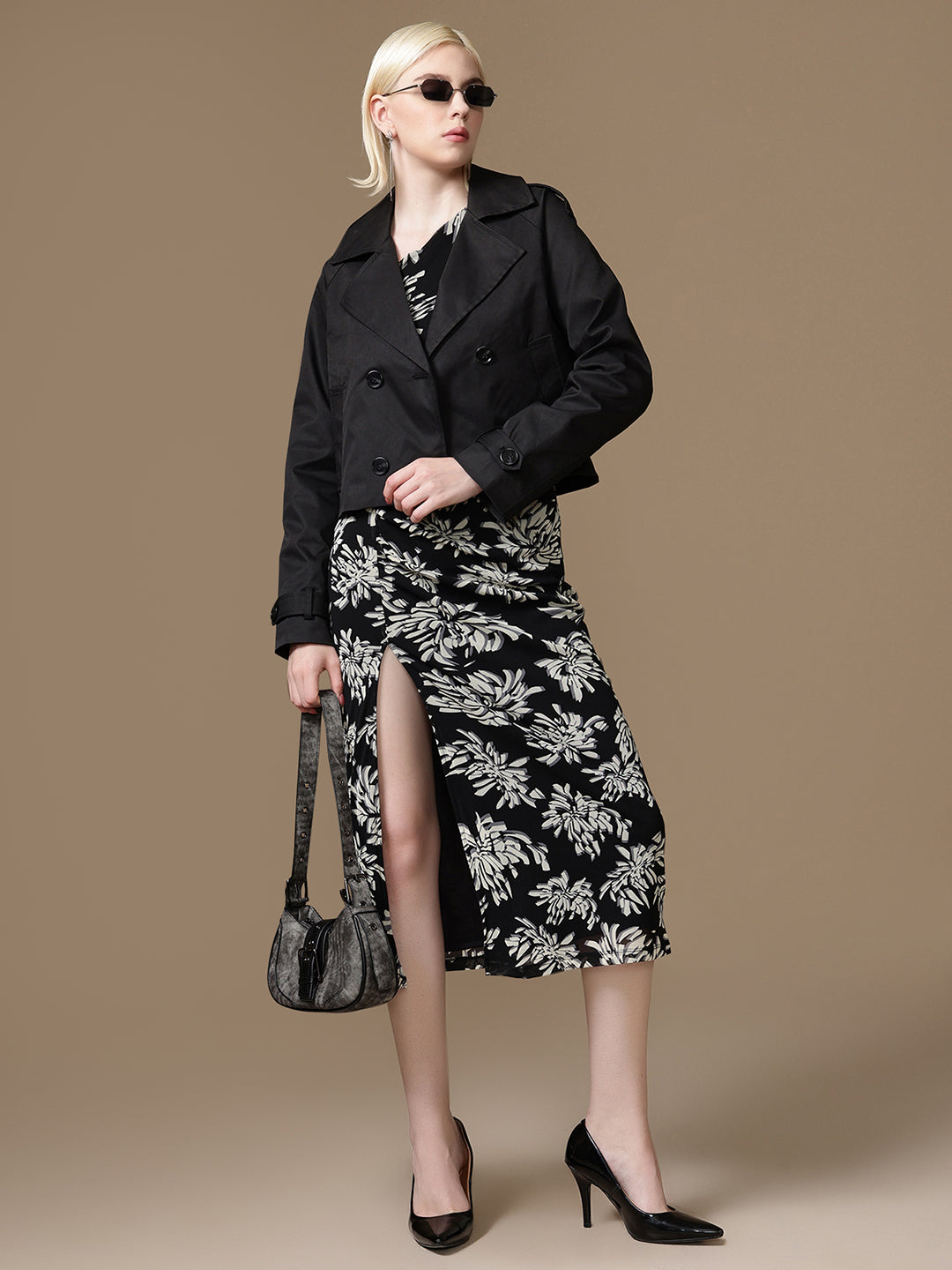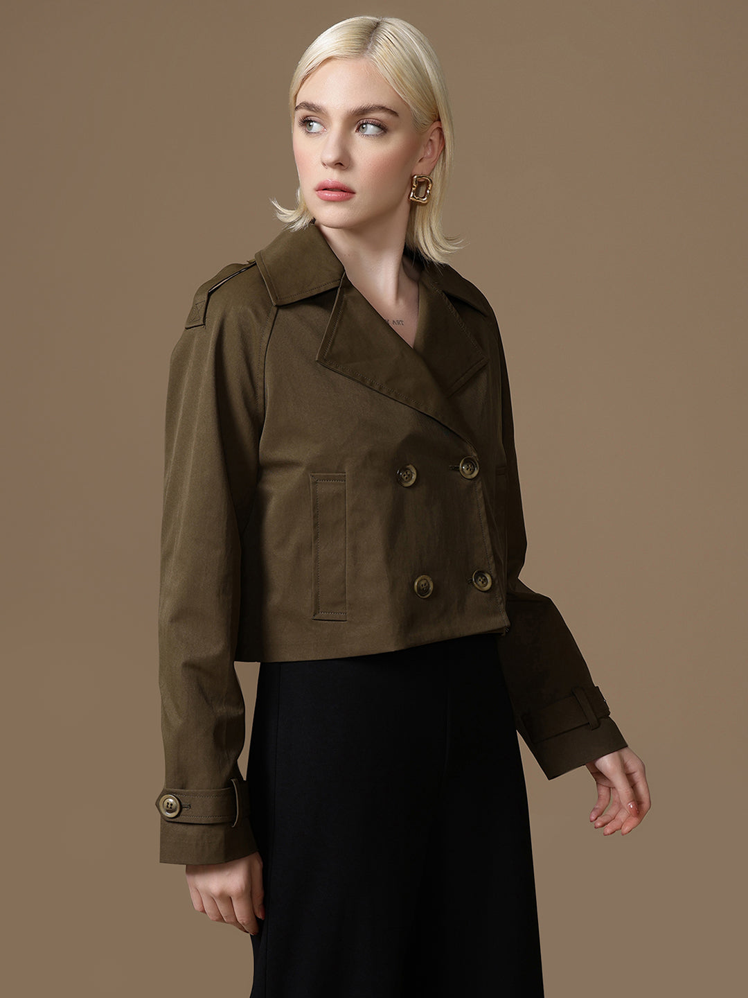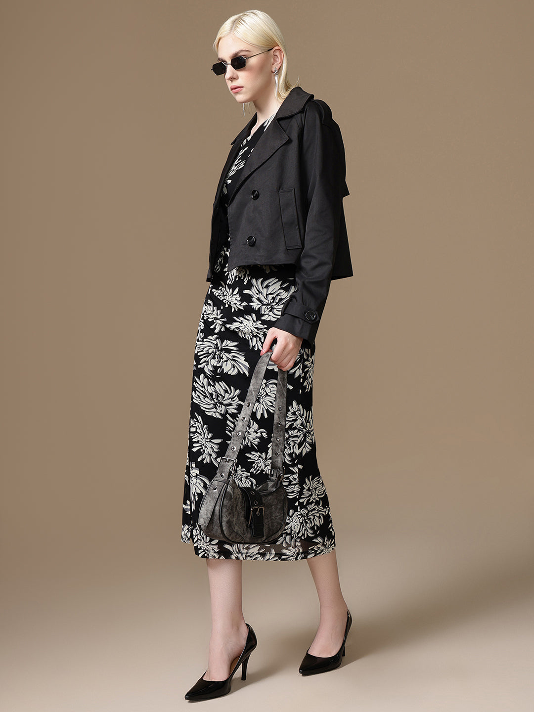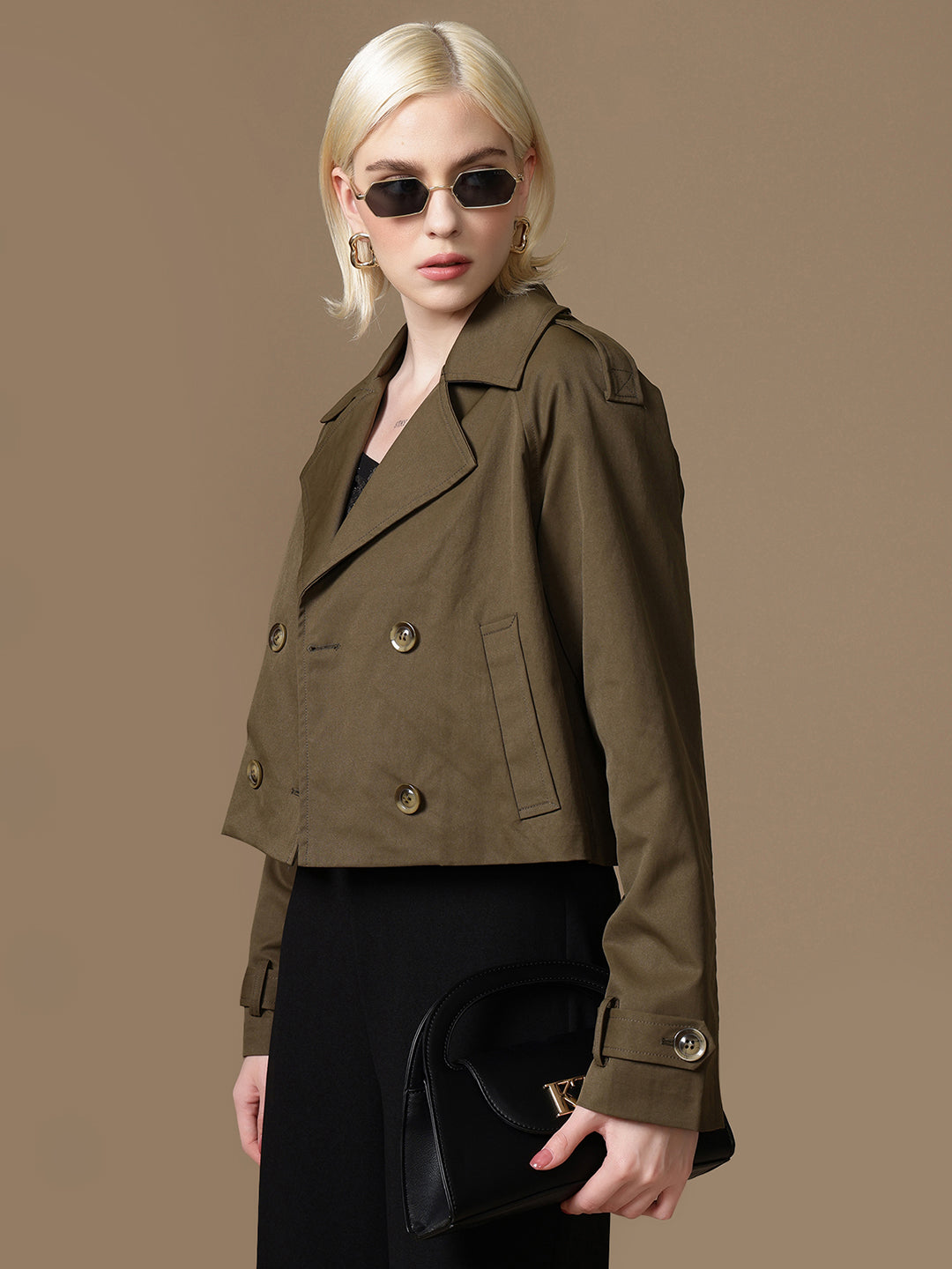 Make a bold statement with the Muster Cropped Jacket, a modern twist on a classic design. Featuring a sharp lapel collar, double-breasted button closure, and a cropped cut, this jacket adds instant edge to any look. Perfect for pairing with high-waist trousers, skirts, or dresses, it transitions seamlessly from casual chic to evening style.