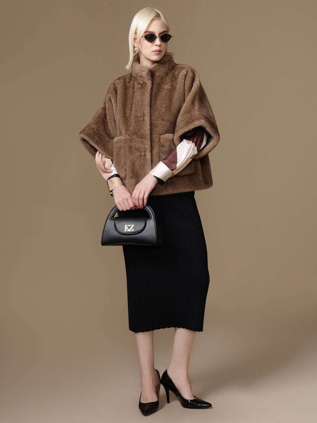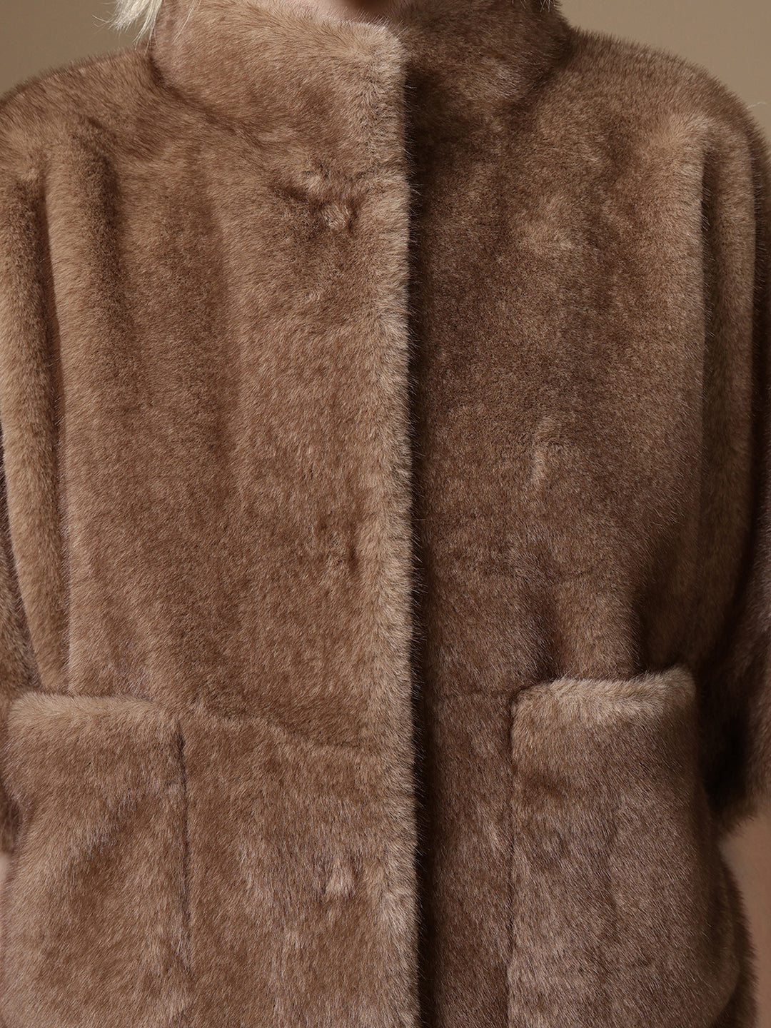 Stay warm in style with the Mignon Fur Jacket, a plush outerwear piece designed for cozy sophistication. Crafted in soft faux fur with a high-neck collar and roomy front pockets, it blends comfort with elegance. Its relaxed fit makes it perfect for layering, whether you’re dressing up for evenings out or keeping chic on casual days.