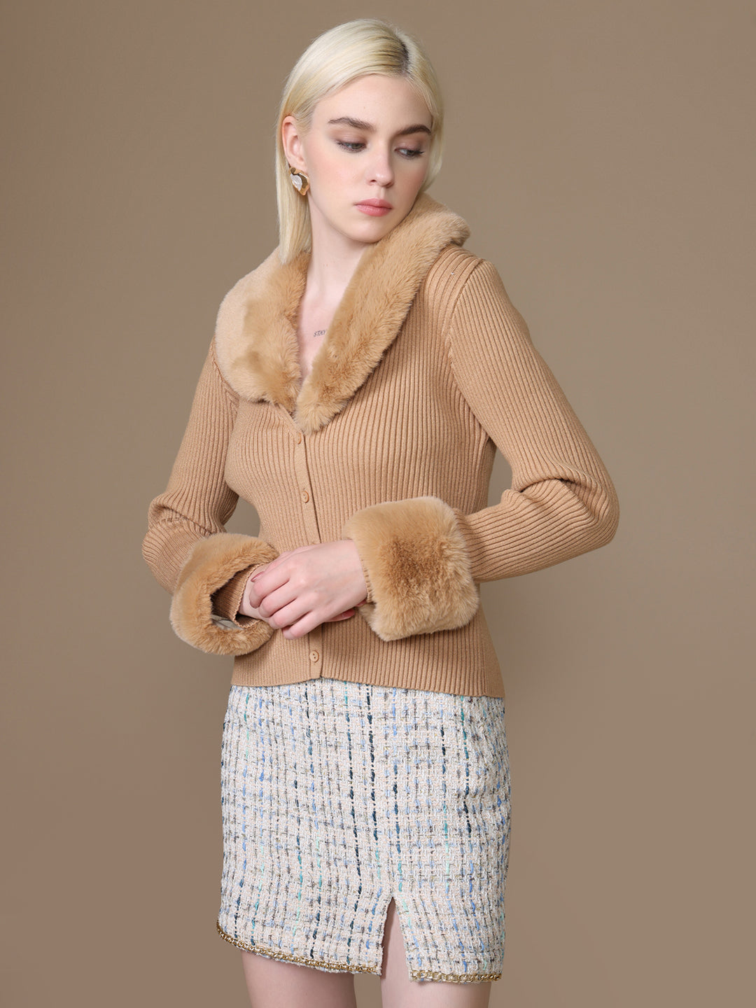 The Brown Multi Grizzly Fur Jacket is a bold outerwear piece that blends style with comfort. Designed with luxe fur detailing on the collar and sleeves, it adds a touch of drama to any look. The open-front style makes it easy to layer, creating a chic yet cozy statement jacket for versatile wear.