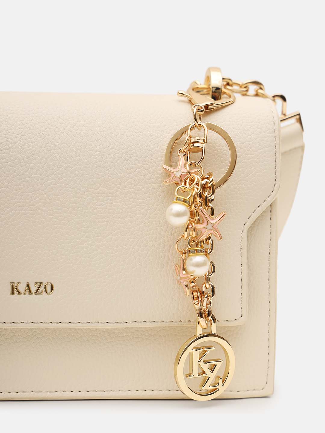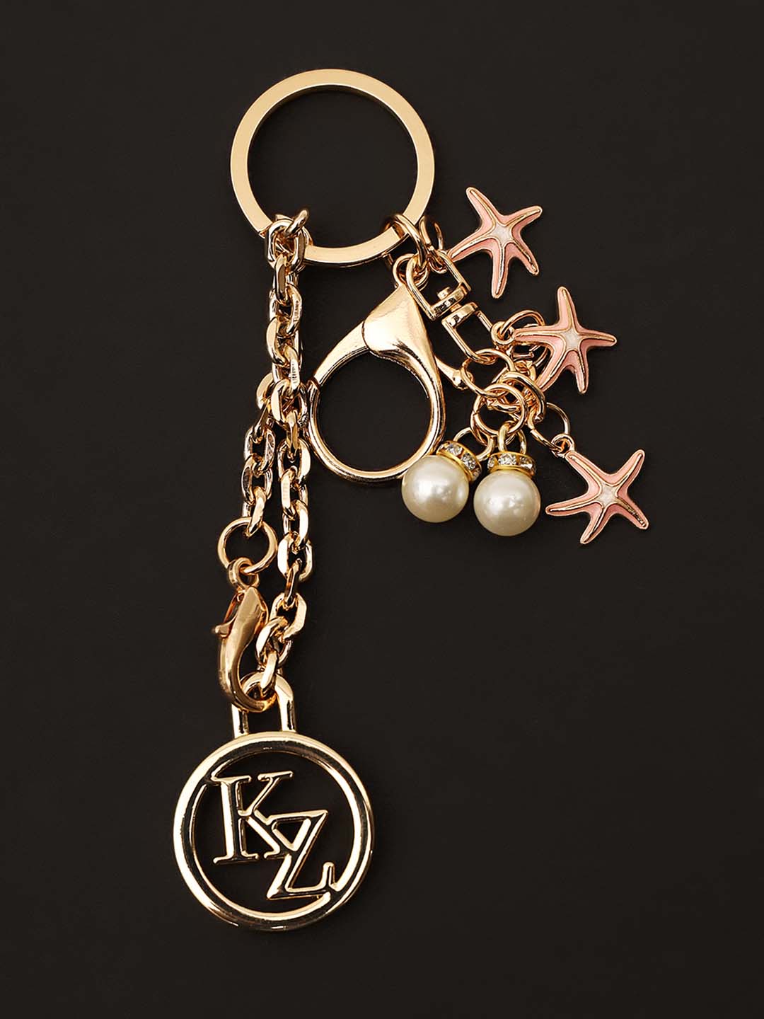 Cluster of golden stars and pearls hanging from a round “KY” medallion. Radiant and dreamy accessory for starlight lovers.
