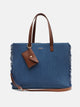 A compact structured satchel made from durable denim with fringe detailing, blending utility and trend for effortless urban flair.