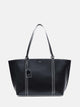 A long, elegant handbag with curved handles and a bold buckle centerpiece—blending sophistication with classic minimal charm.