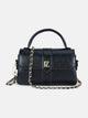 Sling bag with an unique designed quilting. Pleating handheld detail on the handle. Inside pocket. crossbody strap. Lock clasp closure.