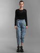Baggy jogg jeans ,tailored for the perfect fit, made from premium quality fabric to assure your comfort. The waist band is subtly detailed with our signature neon stitches and the back pocket with our signature neon zipper.