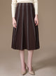 The Bonnie Skirt in brown multi features a geometric jacquard pattern, mid-rise fit, and graceful midi length bringing timeless elegance to your wardrobe essentials.
