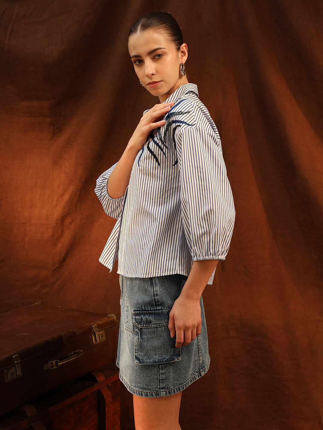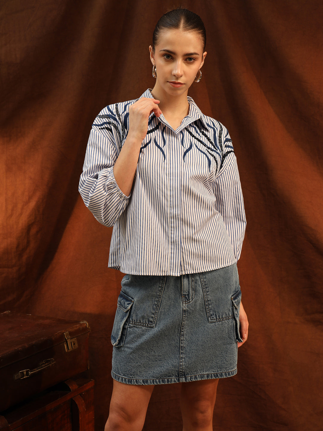 The Yuki Shirt is a stunning combination of embellishment and embroidery, offering a touch of sophistication to any look. Crafted from striped fabric, it features a classic collared design and front button closure for a timeless, polished appearance. The three-quarter sleeves add a stylish finish, while the relaxed fit ensures comfort throughout the day. Whether dressed up or down, the Yuki Shirt is a versatile and elegant addition to your wardrobe.