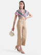 ABSTRACT PRINTED PEPLUM TOP WITH BELT. PAIR IT WITH WHITE DENIM