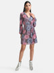 Stretchable Printed Lurex Wrap Midi Dress With Pleat Detail At Waist. Pair It With Pointed Heels For An Attractive Look On A Day Out With Friends.