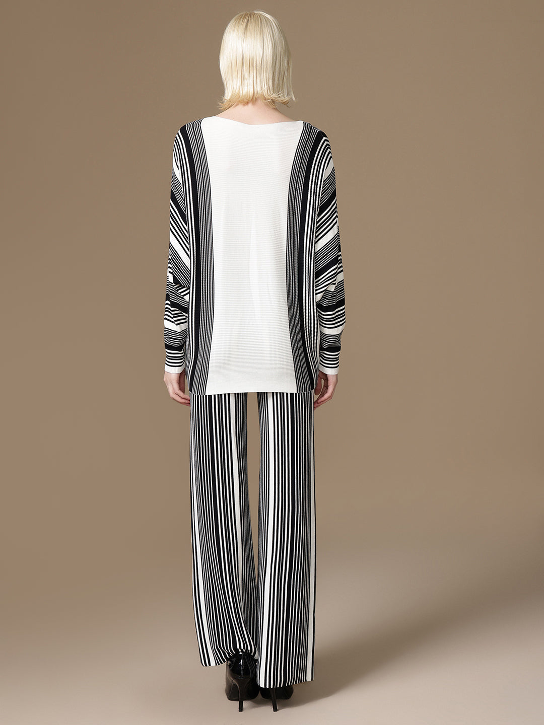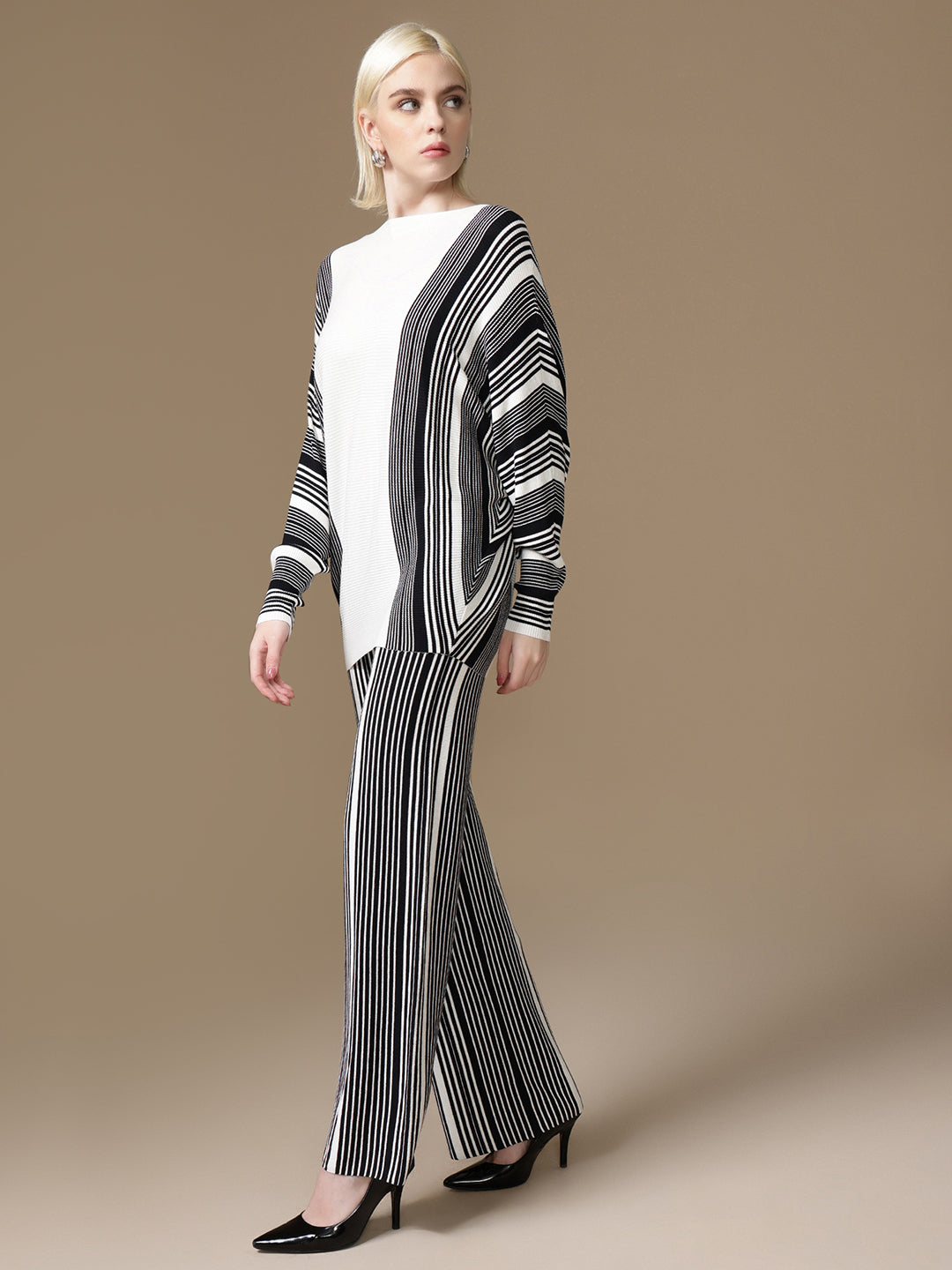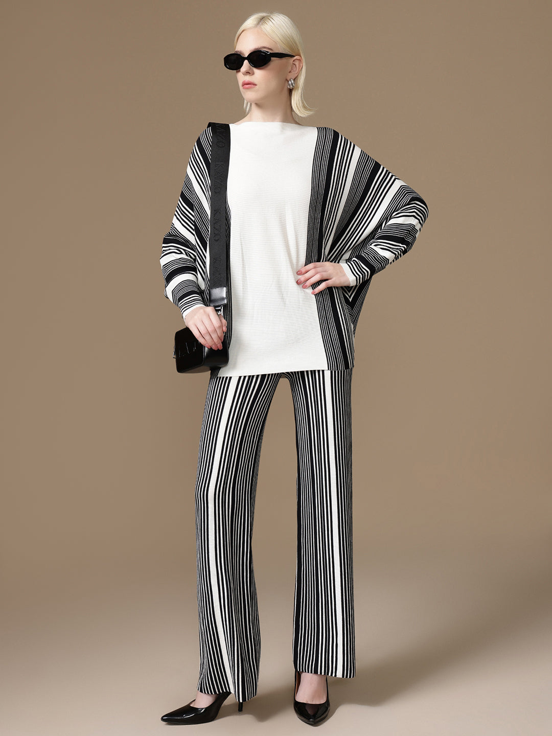 Striped co-ord set with a round-neck batwing top and mid-rise full-length pants, both in relaxed fit for effortless style and all-day comfort.