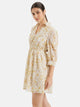 Geometric Printed Wrap Mini Dress With Full Sleeves And Tie-Knot.
