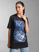 Drop shoulder short sleeve Women's T-shirt with a round neckline. Featuring front big chest print graphic.