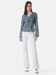 Ruched satin shirt pair it with bell bottom pants and strappy heels for a classy work look.