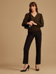 Floral printed lace top with bell sleeves. pair it with black denim and pointed heels for a trendy day look.