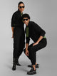 High-waist unisex joggers featuring an elastic waistband with adjustable drawstrings, side pockets, cargo patch pockets and cuffed rib hem.