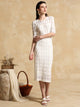 Printed Mesh Fitted Top: Discover Sophistication With Our Printed Mesh Top. Featuring A Stylish Front Wrap Detail And A Flattering V-Neckline, It Offers A Fitted Silhouette That Enhances Your Look With Modern Flair. Perfect For Pairing With Skirts Or Pants, This Top Combines Elegance And Versatility For Any Occasion.