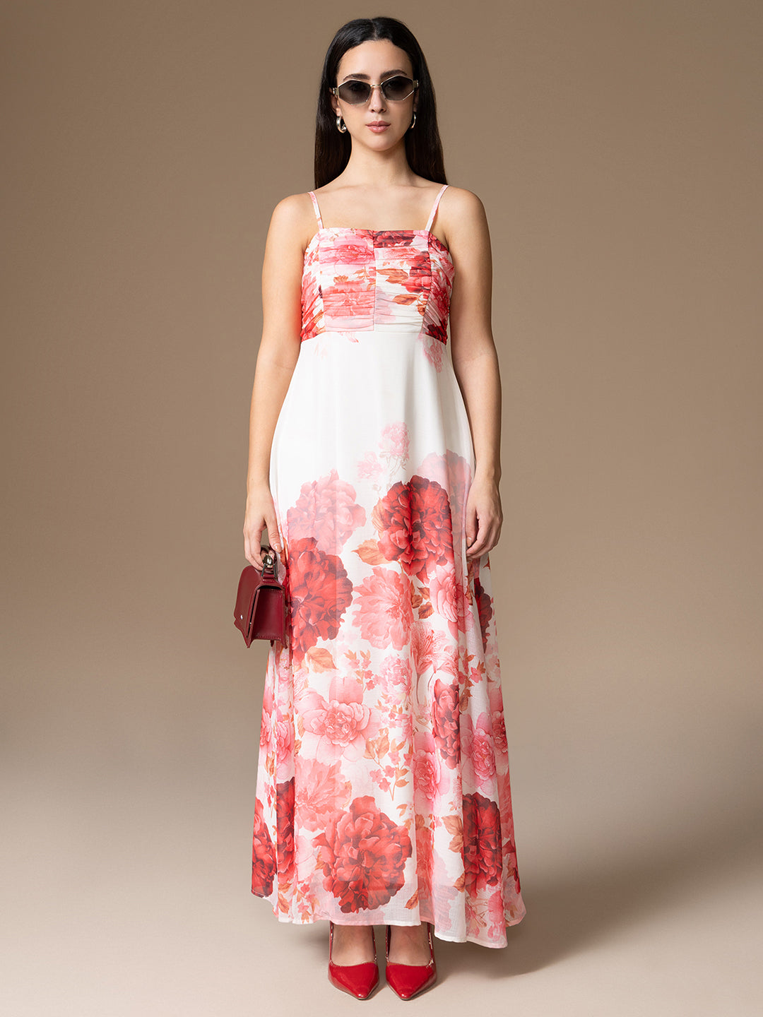 The Flavia Maxi Dress is a perfect blend of feminine charm and fluid elegance. Featuring a placement floral print, this A-line silhouette flows beautifully with every step. The shoulder straps and front pleating detail add soft structure and visual interest, while the smocked back ensures a flexible, flattering fit. Designed as a full-length maxi, it offers easy movement and timeless appeal—ideal for garden brunches, getaways, or casual evenings out. The Flavia Maxi Dress brings effortless beauty to your wardrobe, season after season.
