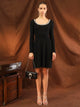 The Mister Midi Dress blends elegance and edge with its high neckline, front cut-out, and embellished detail, finished with full sleeves and a sleek black midi silhouette perfect for winter evenings.