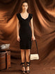 The Hiro Midi Dress in rich burgundy is a sleek seasonal staple. Designed with a classic round neck, contrast detailing, and a subtle front slit, this midi-length silhouette adds refined edge to your winter wardrobe perfect for desk-to-dinner dressing.
