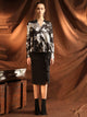 The abstract pattern adds a unique and eye-catching touch to this already stunning dress. It's the perfect combination of style and sophistication.