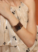 Thick, polished bangle radiates confident style and makes a bold standalone piece.