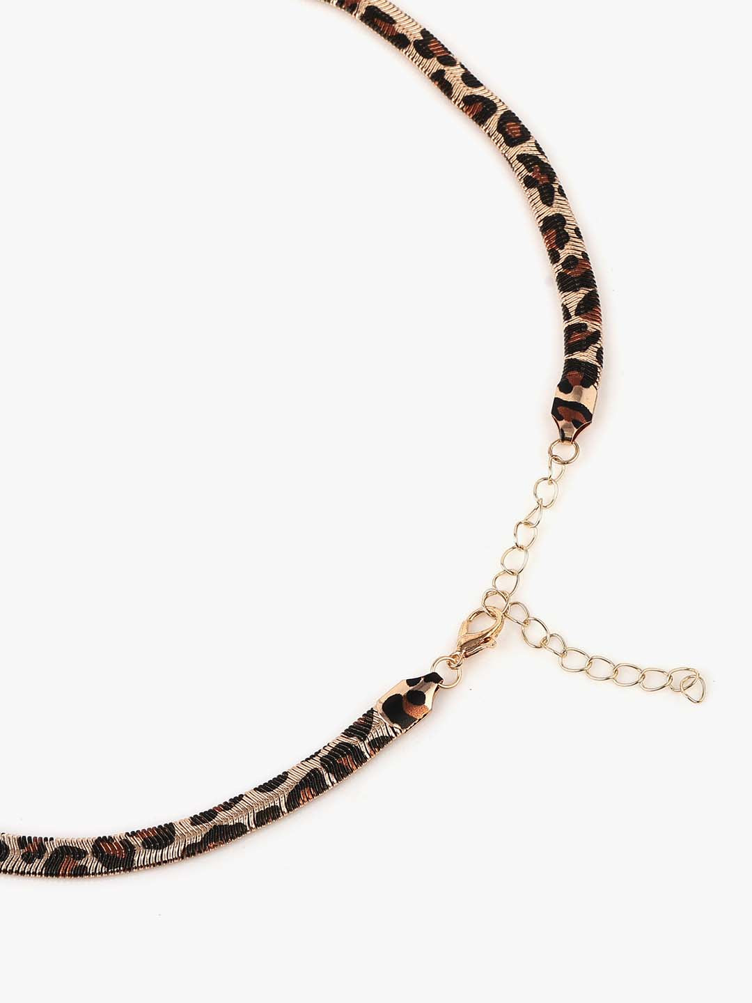 Statement Necklace Wrapped In A Leopard Print Design For Bold, Fashion-Forward Styling.