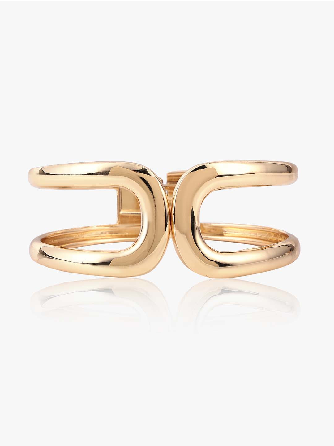 A Sleek, Sculptural Bracelet Featuring Dual Open Loops In A Smooth Polished Finish. Its Modern Silhouette Offers A Bold Yet Minimalist Touch To Any Ensemble.