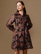 The Moxie Shirt in brown multi features floral burn-out fabric, a collared neckline, 3/4th elasticated sleeves, and button closure a textured staple with effortless charm.
