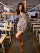 Geometric Printed Top With Ruffle