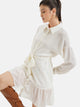 Embroidered Halter Neck Midi Dress With Lace Inserts. Pair It With Strappy White Heels For A Chic Brunch Look.