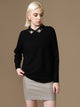 The Alliser Pullover in burgundy features a collar neck with embellished detail, full sleeves, and a relaxed fit—a warm, elegant layer for refined winter dressing.