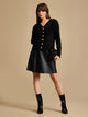 The Chika Pullover in cream features a V-neckline with show button detail and full sleeves an elegant winter essential designed for cozy yet polished everyday layering.