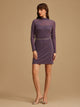 Velvet Mini Dress With Ruching And Mock Placket. Pair It With High Ankle Boots And A Handbag For A Chic Look At Work.