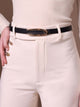 A refined black belt finished with a bold interlinked gold buckle. Perfect for elevating both casual and formal outfits.