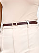 Add a touch of elegance with Kazo's thin belt featuring a bold statement buckle. Perfectly crafted to accentuate your waist and elevate any outfit with a chic, eye-catching detail.