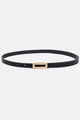 Discover sophistication with our thin faux leather belt featuring an interlock buckle. This sleek accessory offers a polished finish and versatile style, enhancing any outfit with modern touch.
