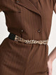 Kazo Glamourous embellished chain belt combines elegance and sparkle. This thin, chic accessory features intricate detailing and adds touch of luxury to any outfit, perfect for elevating your style.