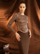 The Lassy Top in classic black with an off-shoulder neckline, full sleeves, and a sleek, fitted knit silhouette. A chic essential that pairs bold femininity with effortless allure perfect for evenings out and statement socials.