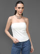 This elegant white lace top blends femininity with refined structure. Designed with a flattering wrap-style front and delicate gathered detailing at the waist, it highlights the natural silhouette. The intricate all-over lace pattern adds texture and sophistication, while the half sleeves offer a balanced, graceful look. Perfect for both day and evening styling.