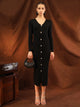 Step into the season with the Brown Winter Midi Dress featuring a round neckline, full sleeves, and shimmering lurex knit. A cozy-chic silhouette with subtle festive sparkle.