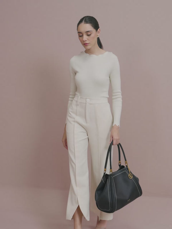The Elandra tote boasts dual top handles, adding a luxurious edge to your everyday ensemble.