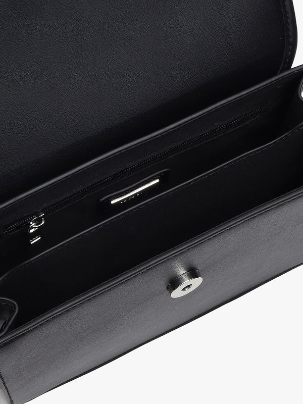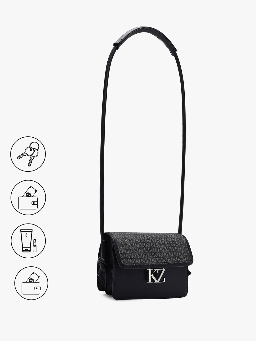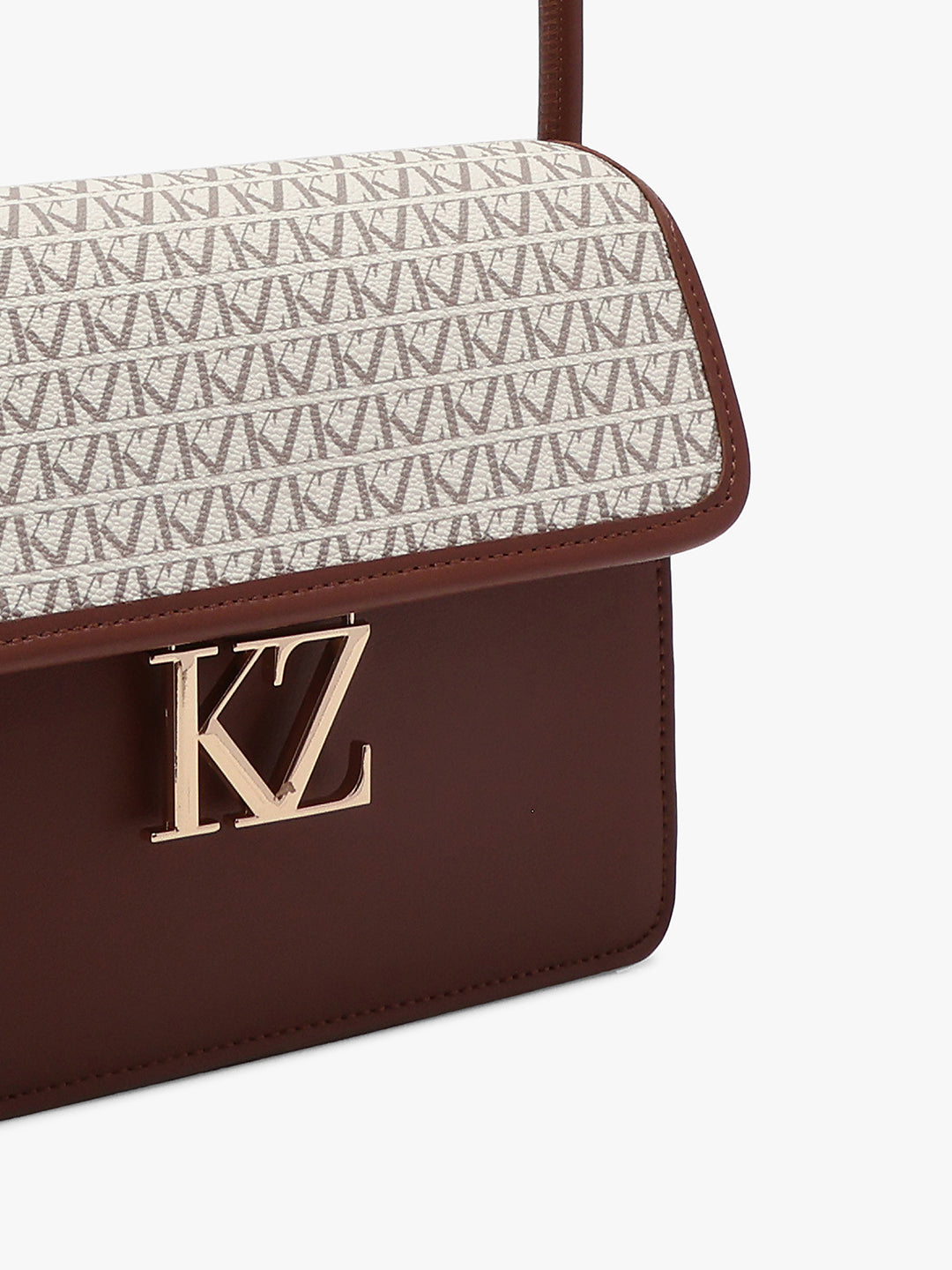 Elegant crossbody with KZ monogram flap, a modern design that blends branding with timeless sophistication.