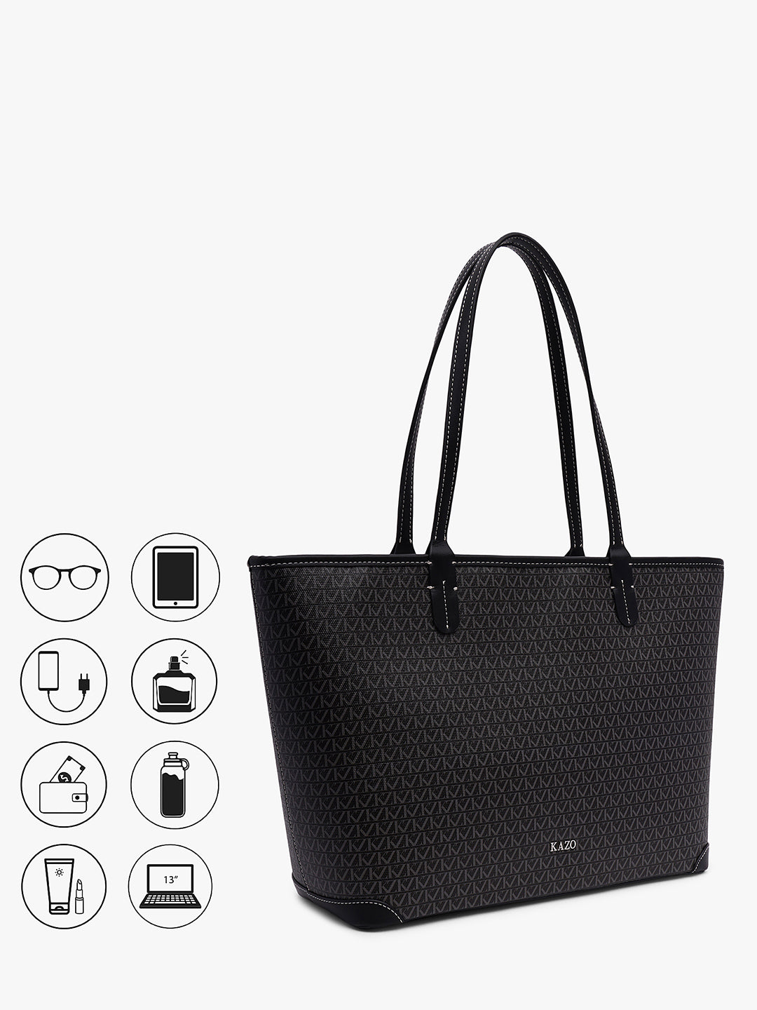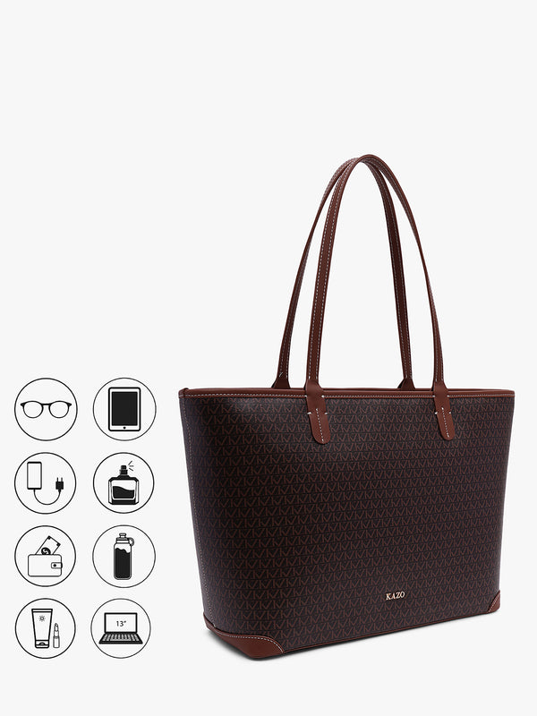 Spacious printed tote with modern design and al over kz print, perfect for daily use, travel, or city chic styling.
