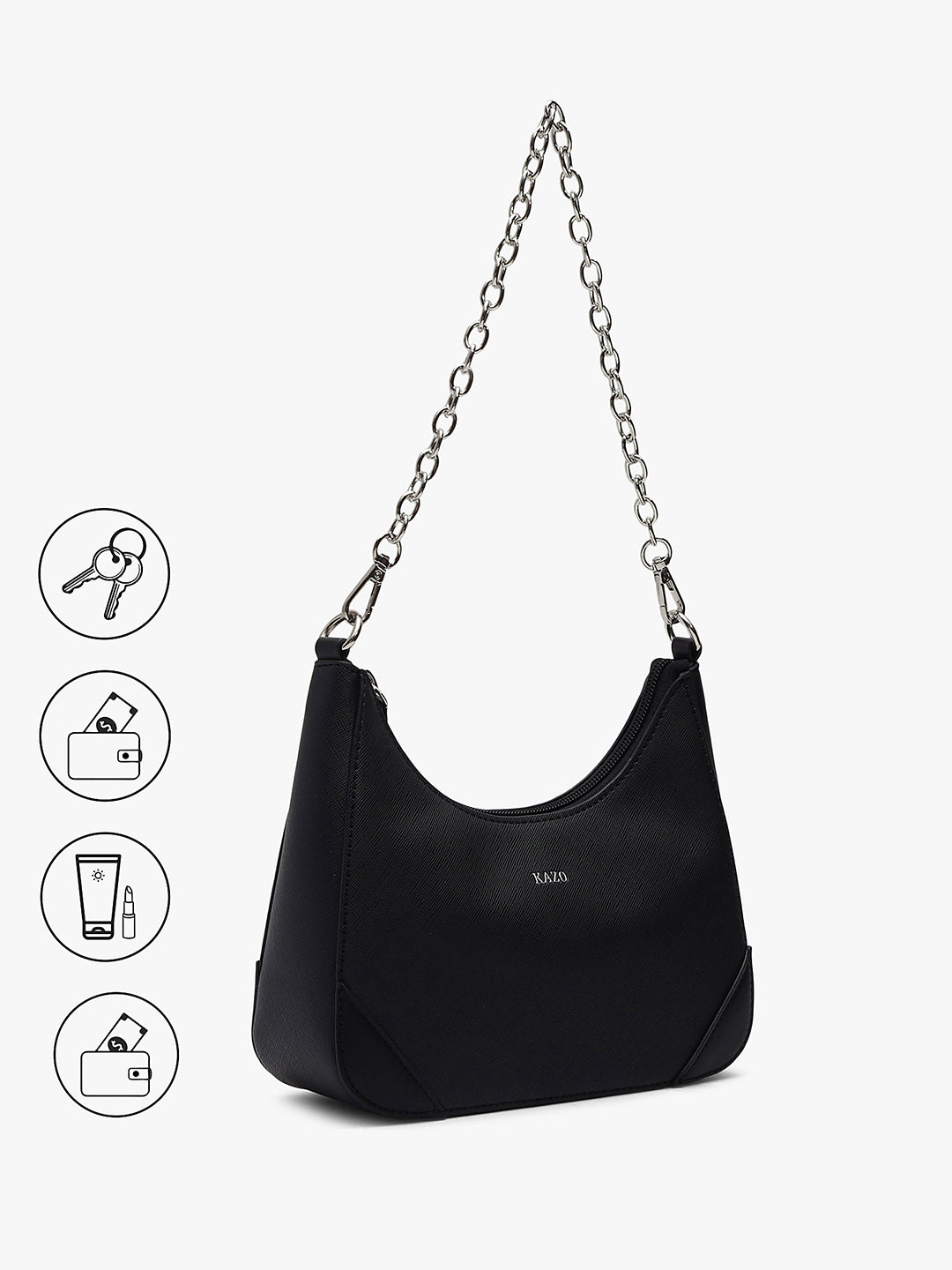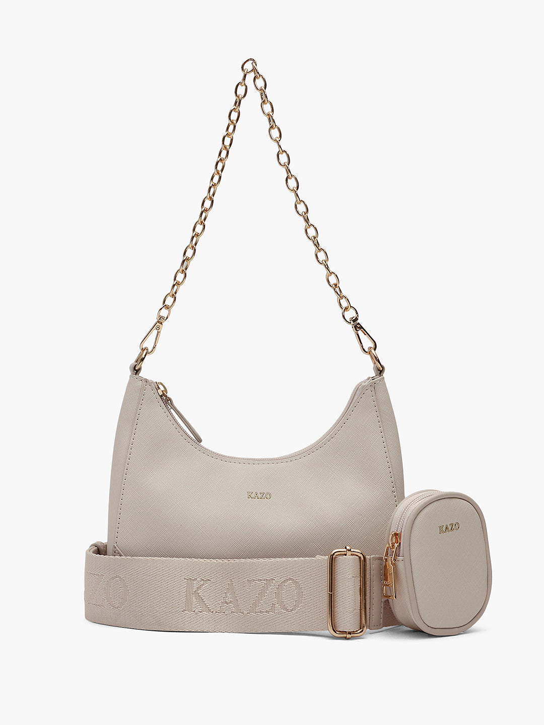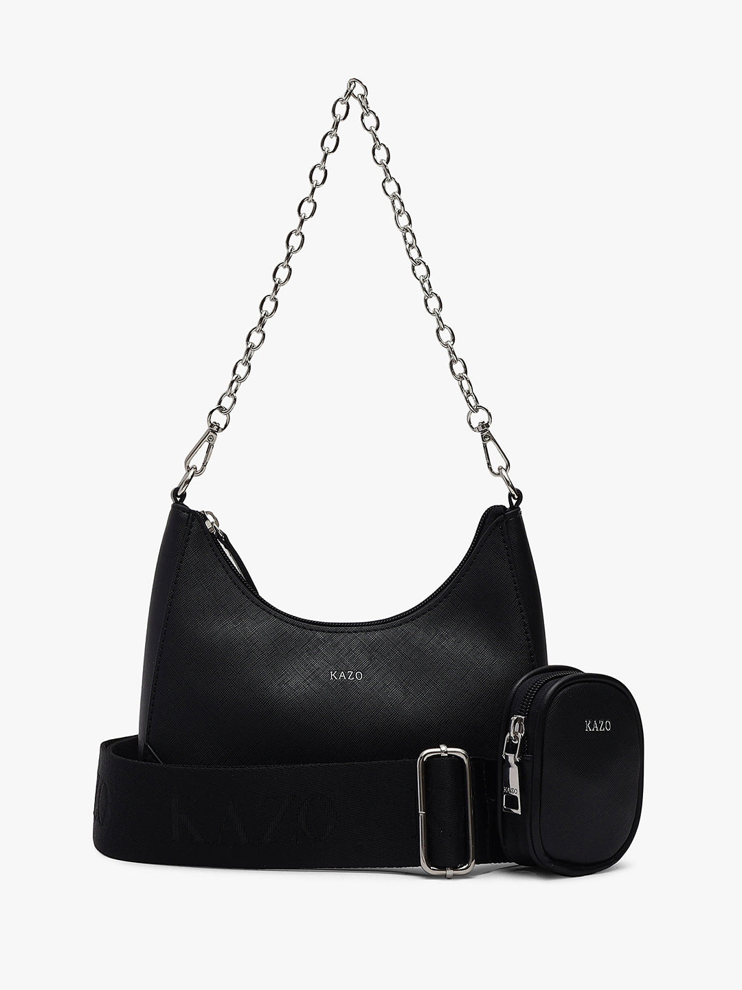 A trendy design with chain detail and detachable pouches, blending function with effortless elegance.
