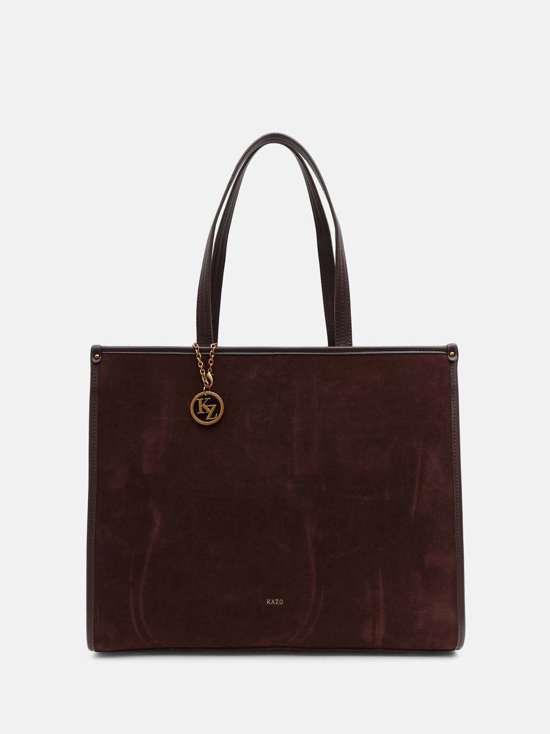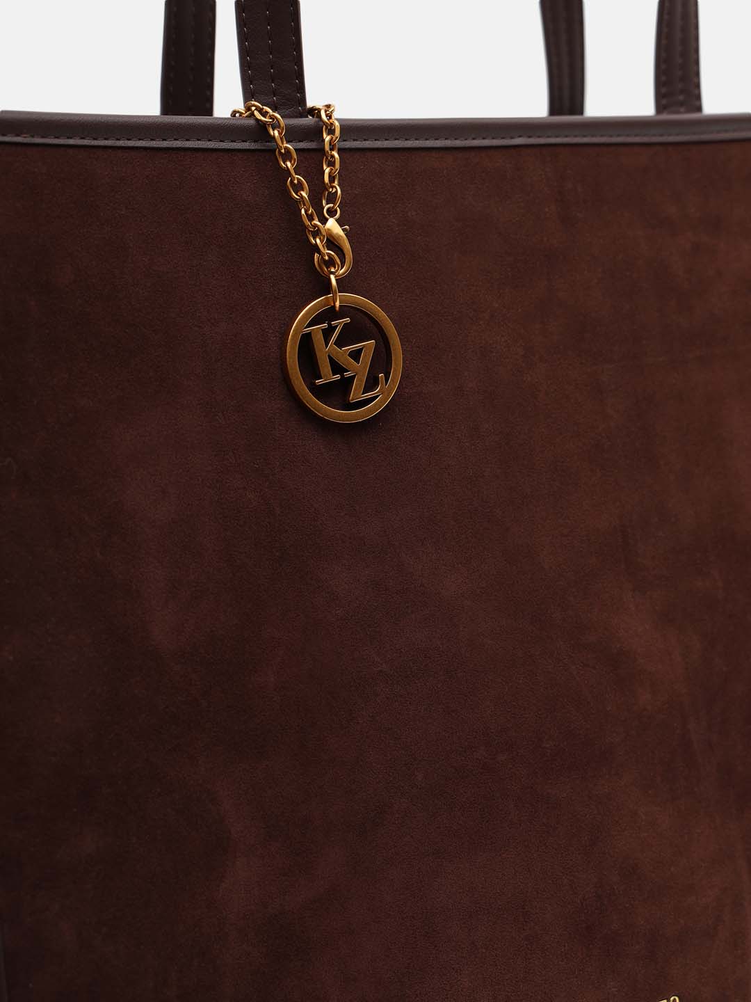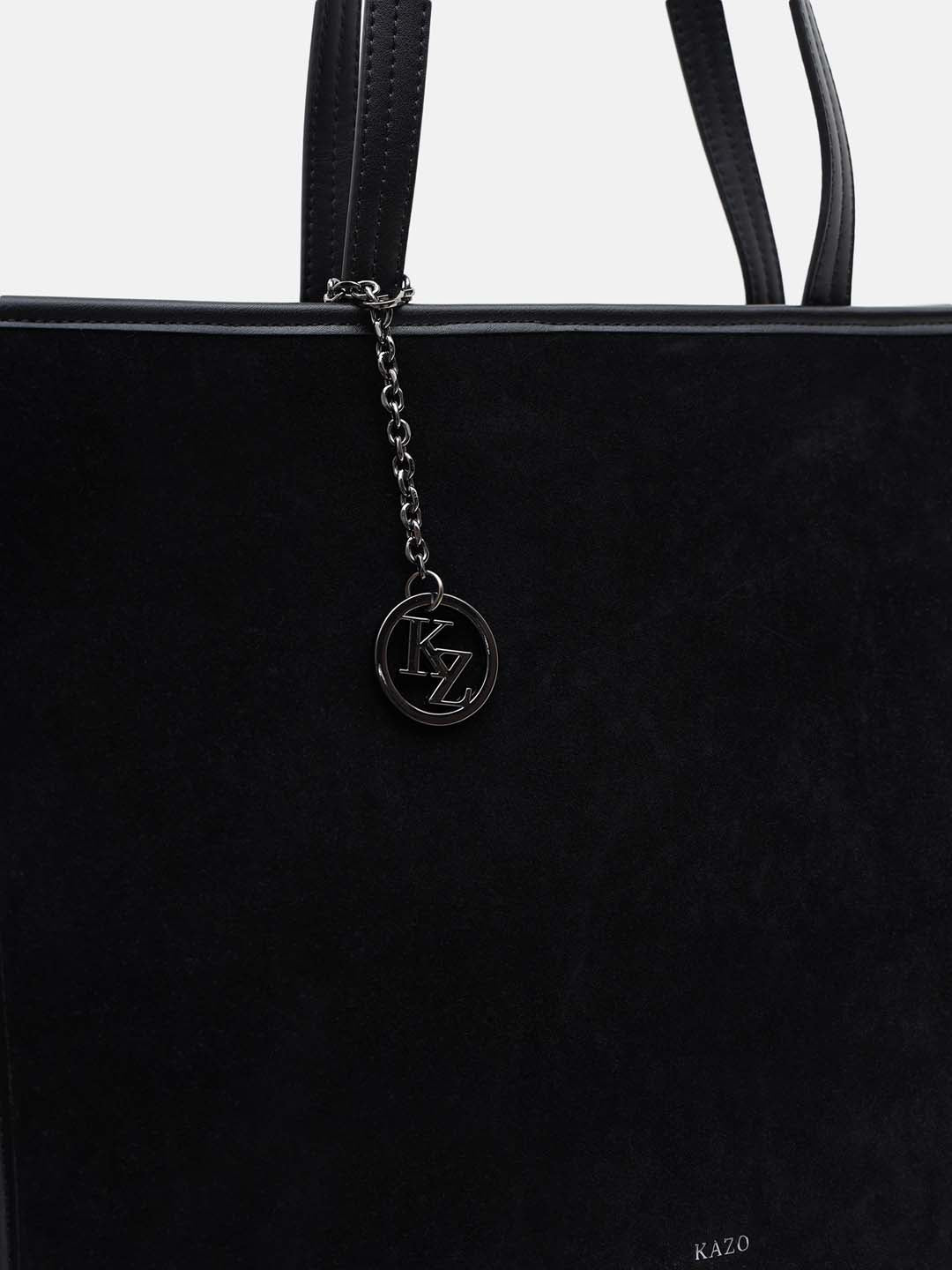 A sophisticated rectangular tote with a soft texture, metallic charm accent, and ample space—designed for a polished, versatile appeal.