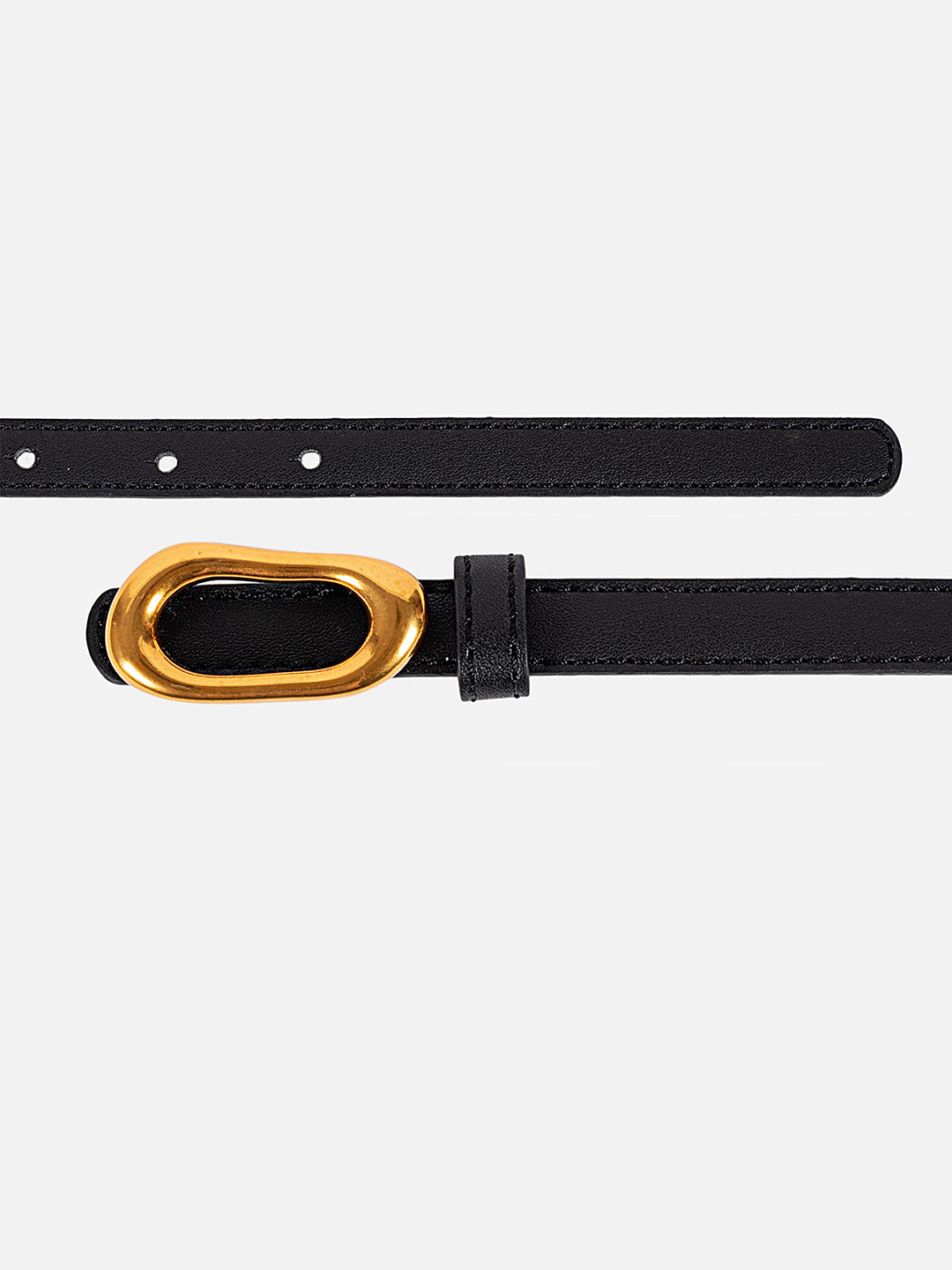 Minimal belt with a bold golden oval loop closure, giving a sleek and trendy finish.