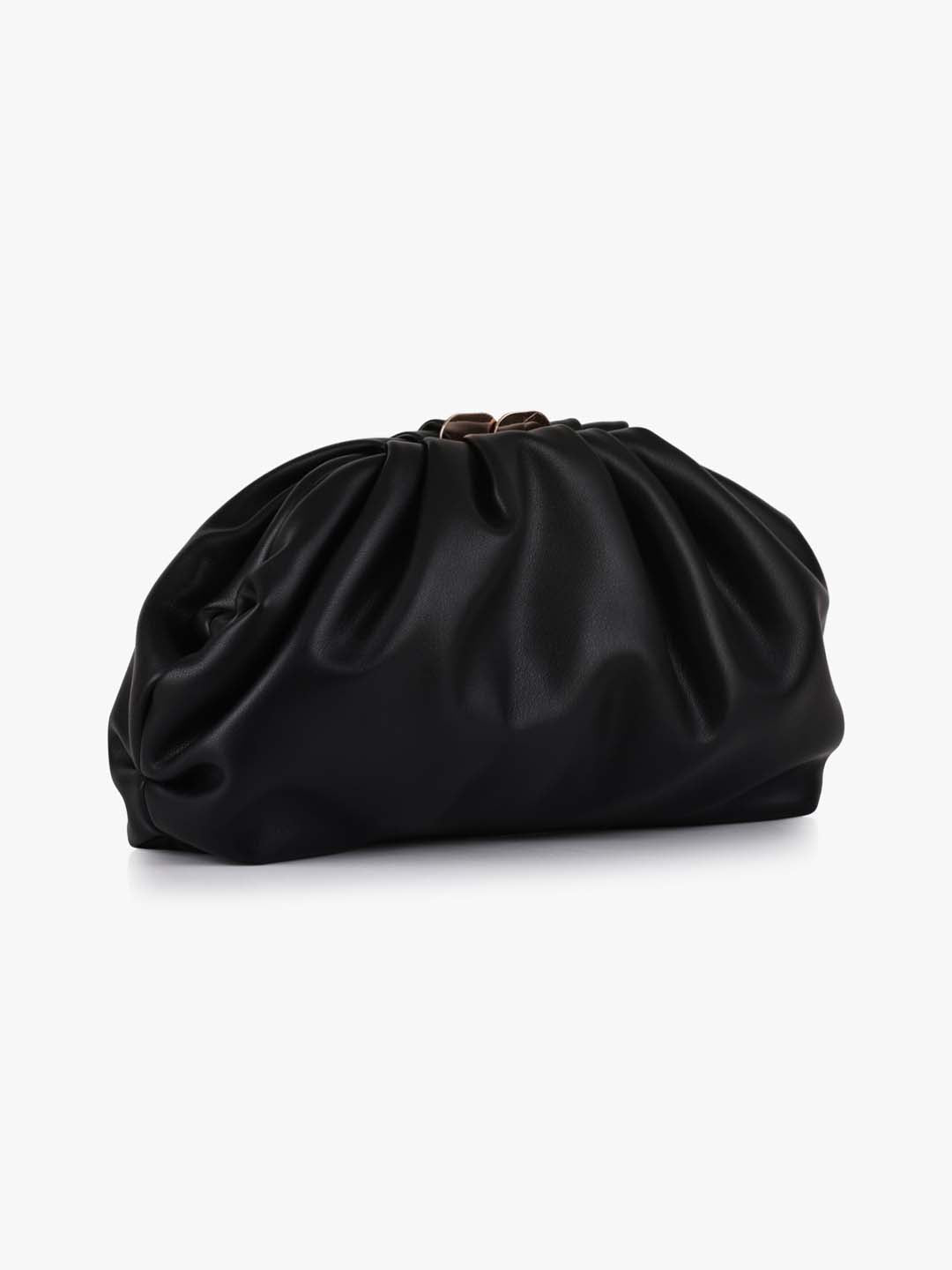 A Soft, Spacious Clutch Bag With A Chic Ruched Design, Secure Closure, And An Additional Long Chain Strap For Versatile Styling.