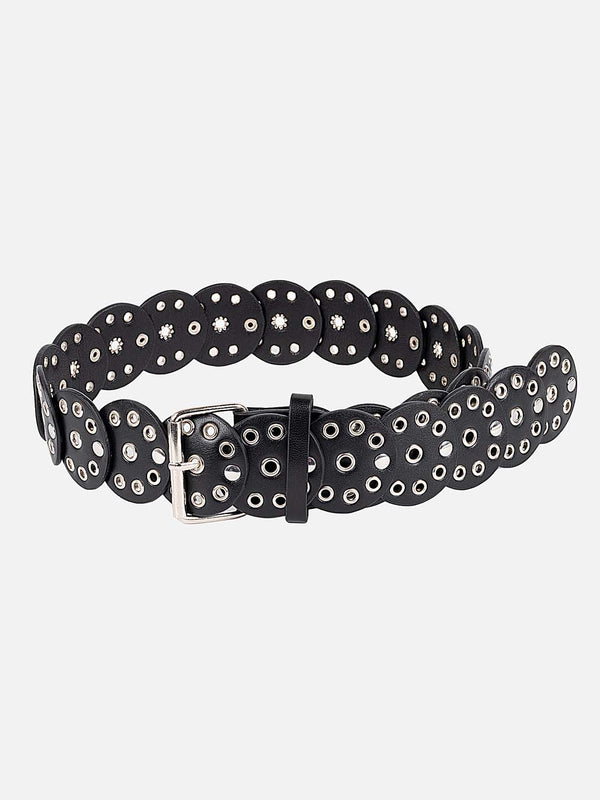 Elevate your ensemble with our thin studded concho belt. Adorned with striking concho studs, this accessory adds a touch of rugged charm and bold flair to any outfit.