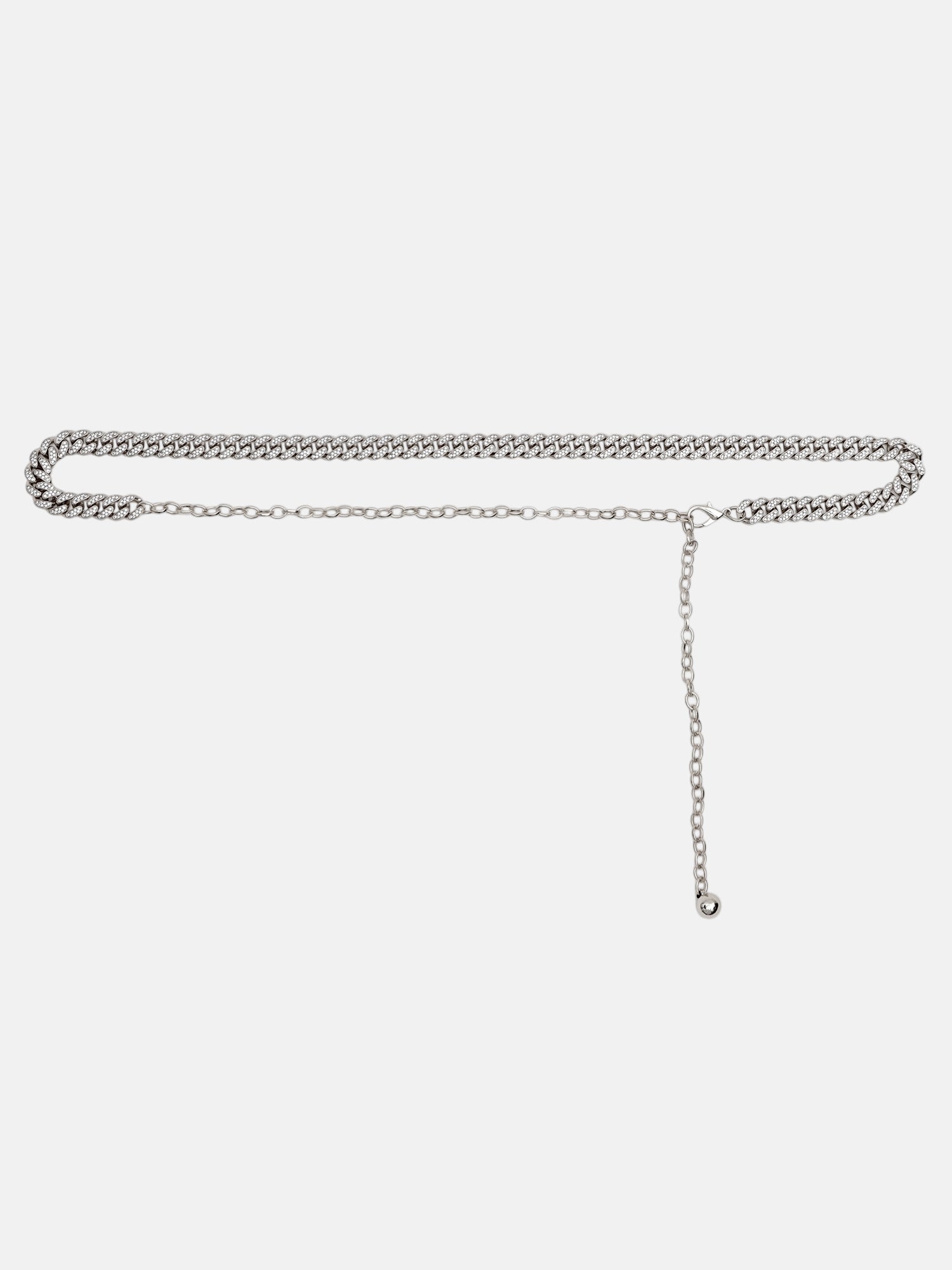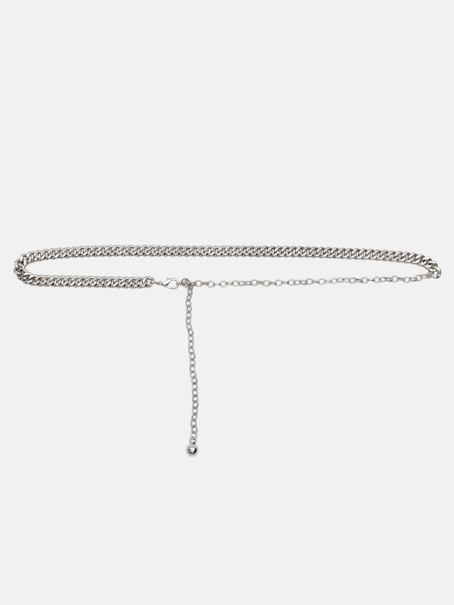 A sleek, modern chain belt designed with polished metallic links, offering a bold statement look. Perfect for elevating casual and party outfits with effortless style and contemporary elegance.